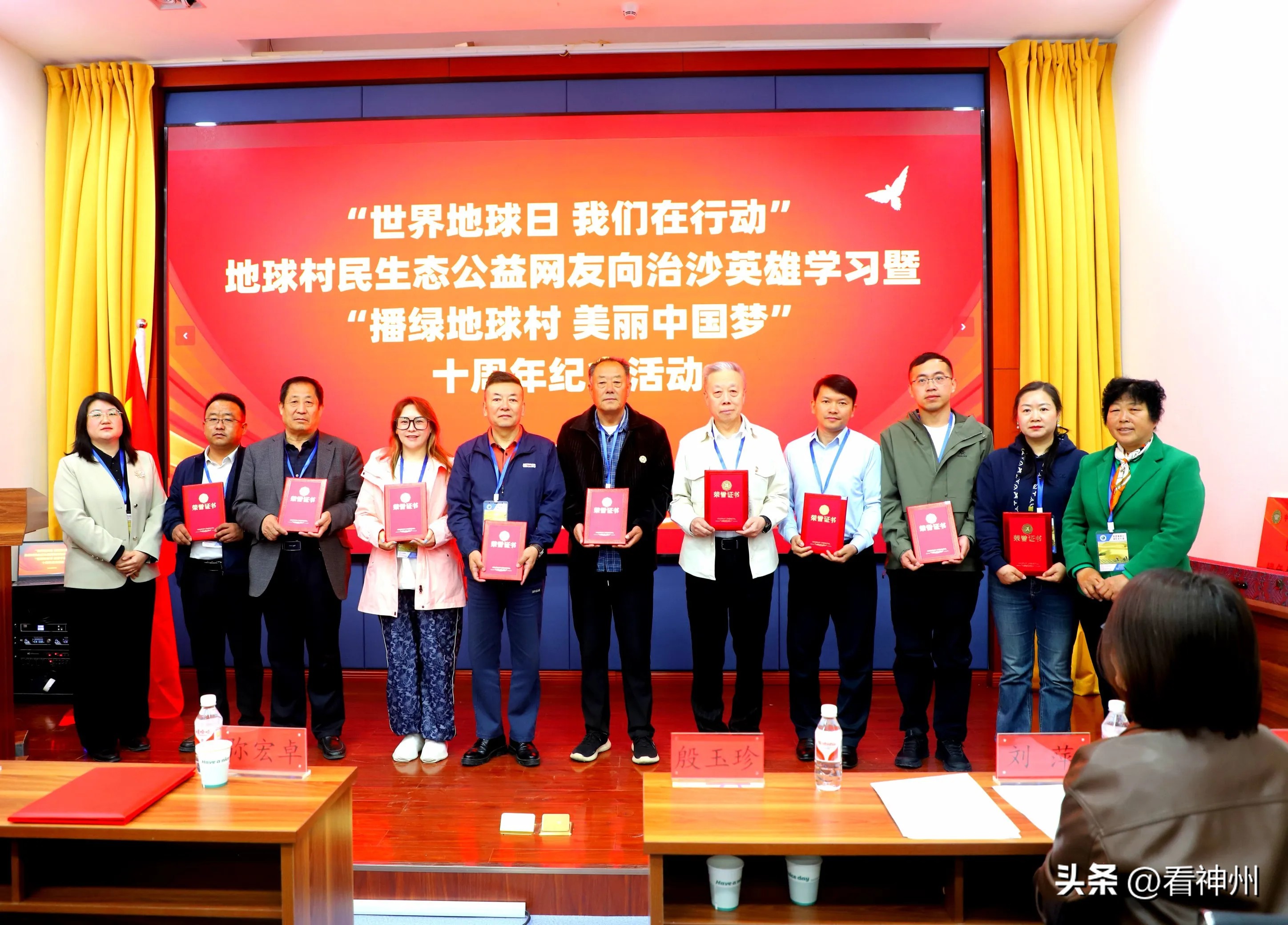 鄂尔多斯市乌审旗人民政府副旗长弥宏卓代表旗委和旗人民政府出席了活动并发表了热情洋溢的致辞。弥宏卓副旗长和殷玉珍劳模共同为来自全国各地的生态公益志愿者李占胜、韩帮泰、陈薇羽、韩雄亮、程文波等30多位人士颁发了荣誉村民证书。